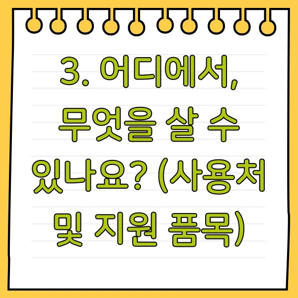 3. 어디에서, 무엇을 살 수 있나요? (사용처 및 지원 품목)